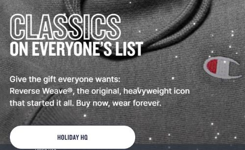 Champion DTC Site Home Page Hero Section Holiday Callout Copy: